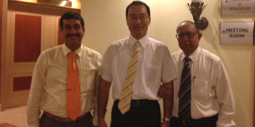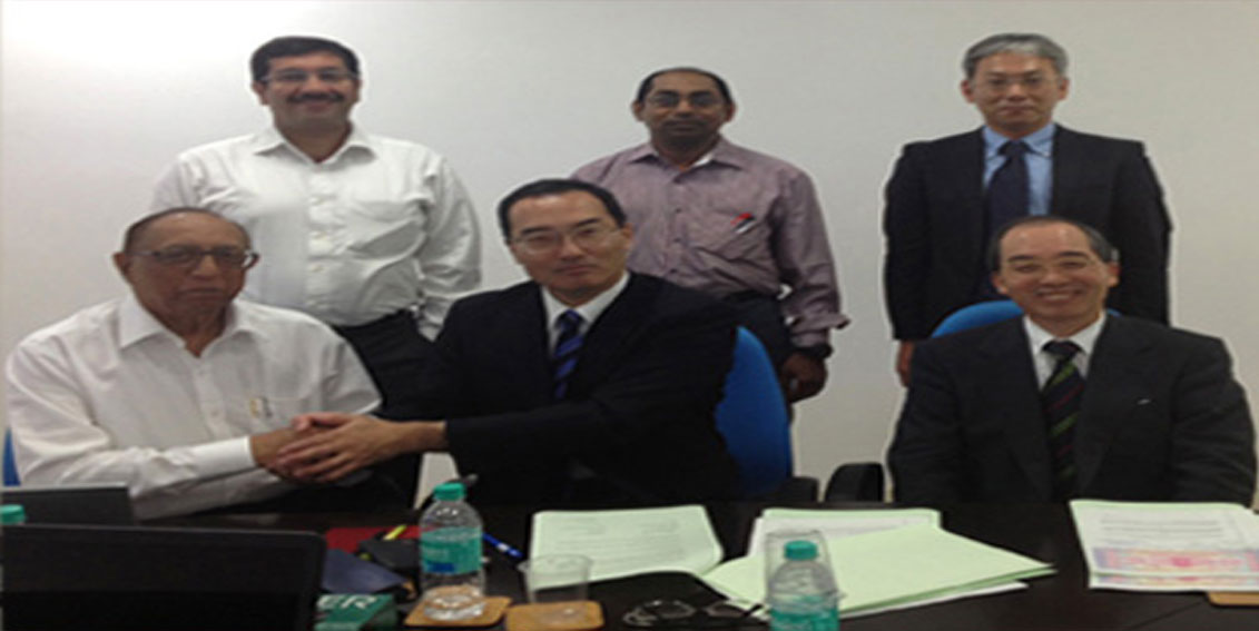 Mr.D.N.Dhody, Mr.Shuhei Nomura & Mr.Sumit Dhody at the meeting on 22.10.2012 after agreeing to form a 50/50 Indian Japanese Joint Venture Company viz. Mipalloy Nomura Plating Company Private Limited to make Speciality Coating on Continuous Casting Mould Plates for the Steel Industry.